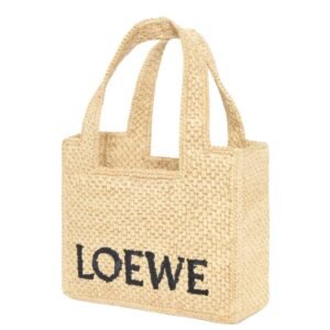 MINI LOEWE FONT TOTE IN RAFFIA