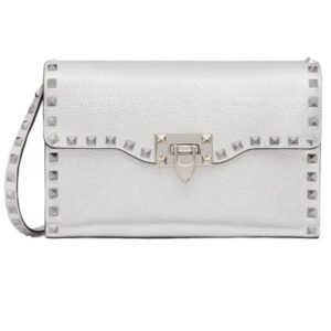 VALENTINO SMALL ROCKSTUD GRAINY METALLIC CALFSKIN CROSSBODY BAG