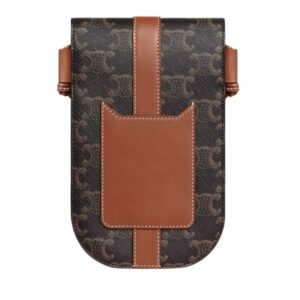 CELINE PHONE POUCH WITH FLAP IN TRIOMPHE CANVAS AND LAMBSKIN TAN