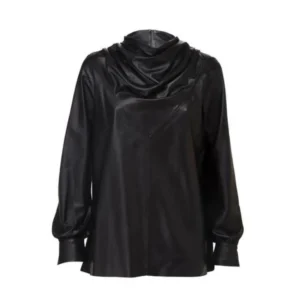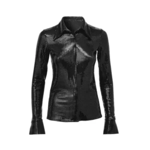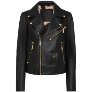Alia Metallic Black Leather Biker Jacket