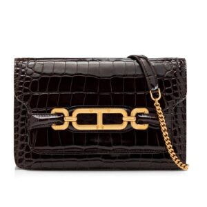 TOM FORD STAMPED CROCODILE LEATHER SMALL SHOULDER BAG ESPRESSO