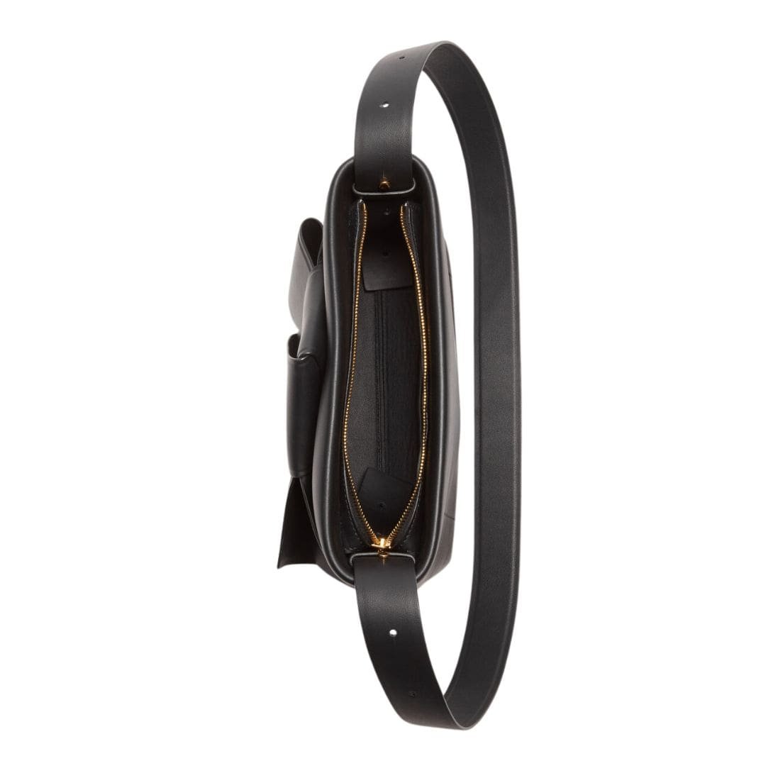 At first glance, the bag’s silhouette captivates with its sleek lines and geometric form, exuding a sense of understated luxury. Its structured shape is reminiscent of origami, showcasing a harmonious balance between simplicity and sophistication. The Musubi Shoulder Bag is a testament to Acne Studios’ commitment to reimagining classic designs with a contemporary twist.