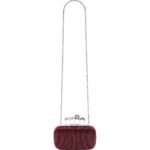 Introducing our exquisite Alexander McQueen Women’s Knuckle Clutch in red, featuring an all-over red bugle embroidery and a handle adorned with crystal-encrusted rings. This versatile clutch can be worn either hand-held or over the shoulder using its chain strap.