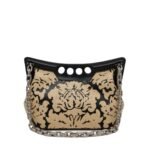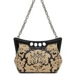 Inspired by the sharp and structured shoulders of tailoring silhouettes, this Alexander McQueen Women’s the Peak bag small in Multicolour features a black Damask print and is handcrafted from raffia and leather with a curve-shaped magnetic frame, juxtaposed with a soft body. The bag can be worn over the shoulder using its antique silver-finished chain strap or hand-held by the four-ring handle.