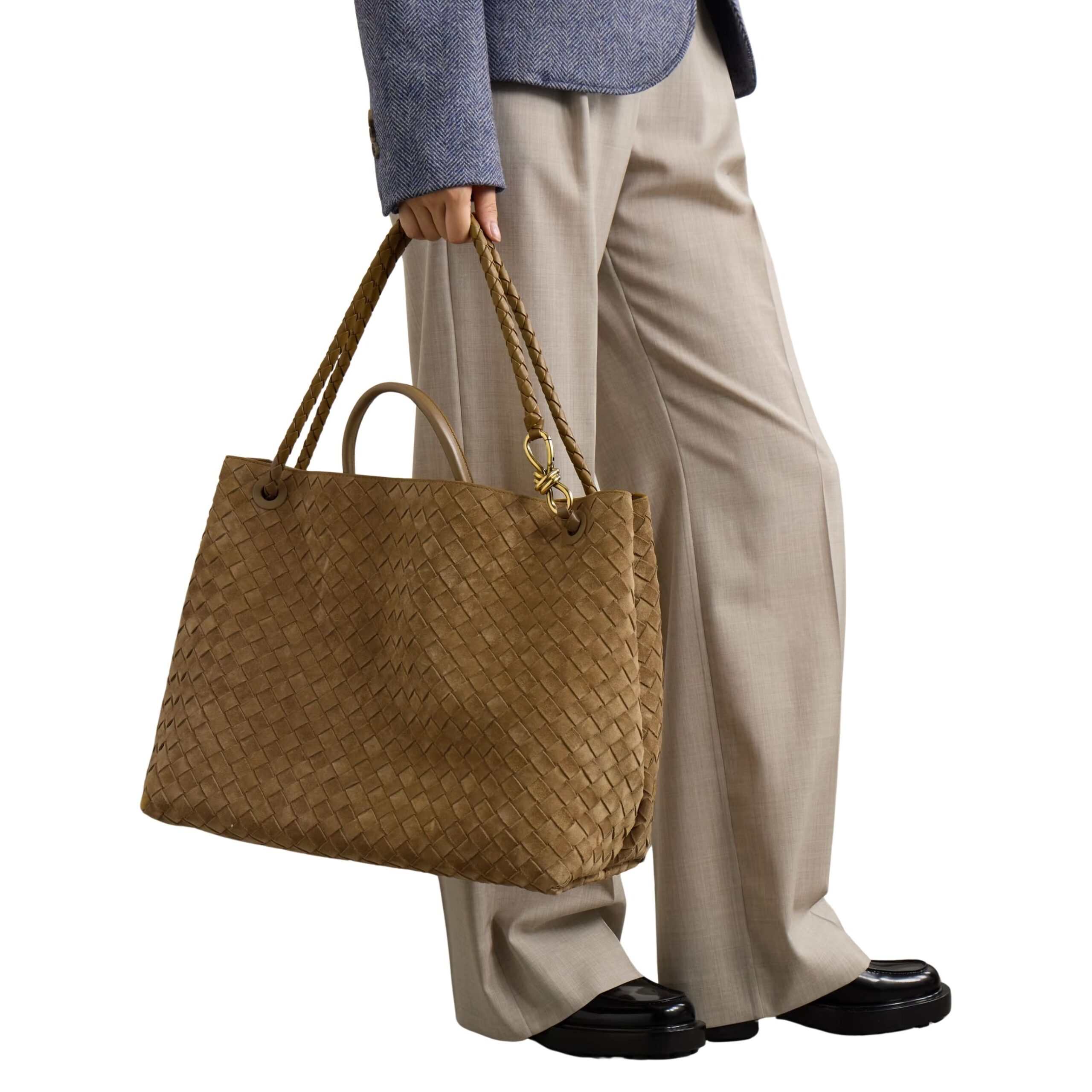 Generously sized to accommodate a laptop, documents, and daily essentials, the tote features a structured silhouette with a soft, flexible body that retains shape while offering comfortable wear. Inside, a well-appointed layout includes zip and slip pockets for secure storage, a lined interior for protection, and reinforced handles engineered for durability. Subtle hardware complements the leather’s tone, providing durable accents that won’t overpower the weave’s tactile appeal.