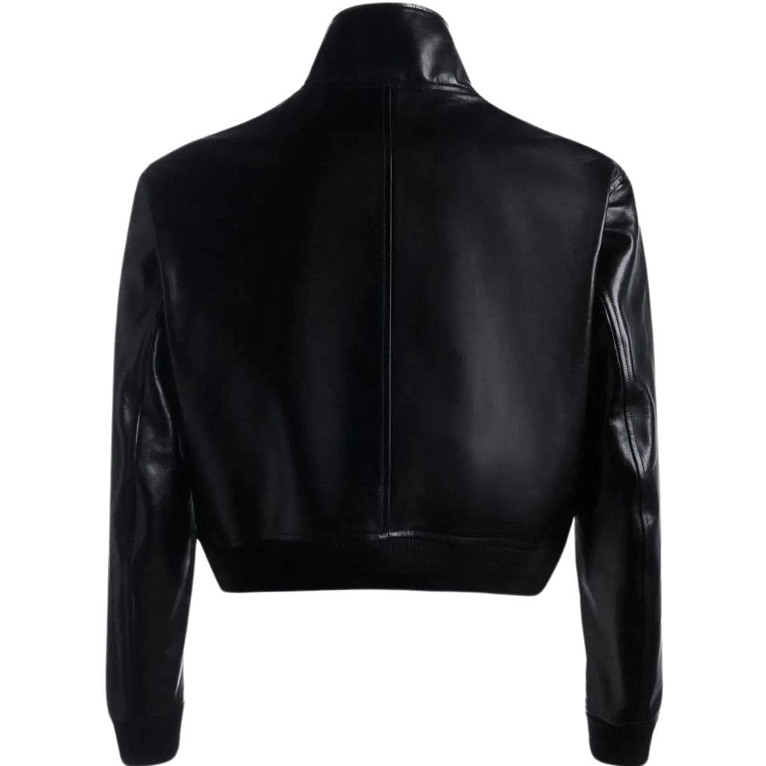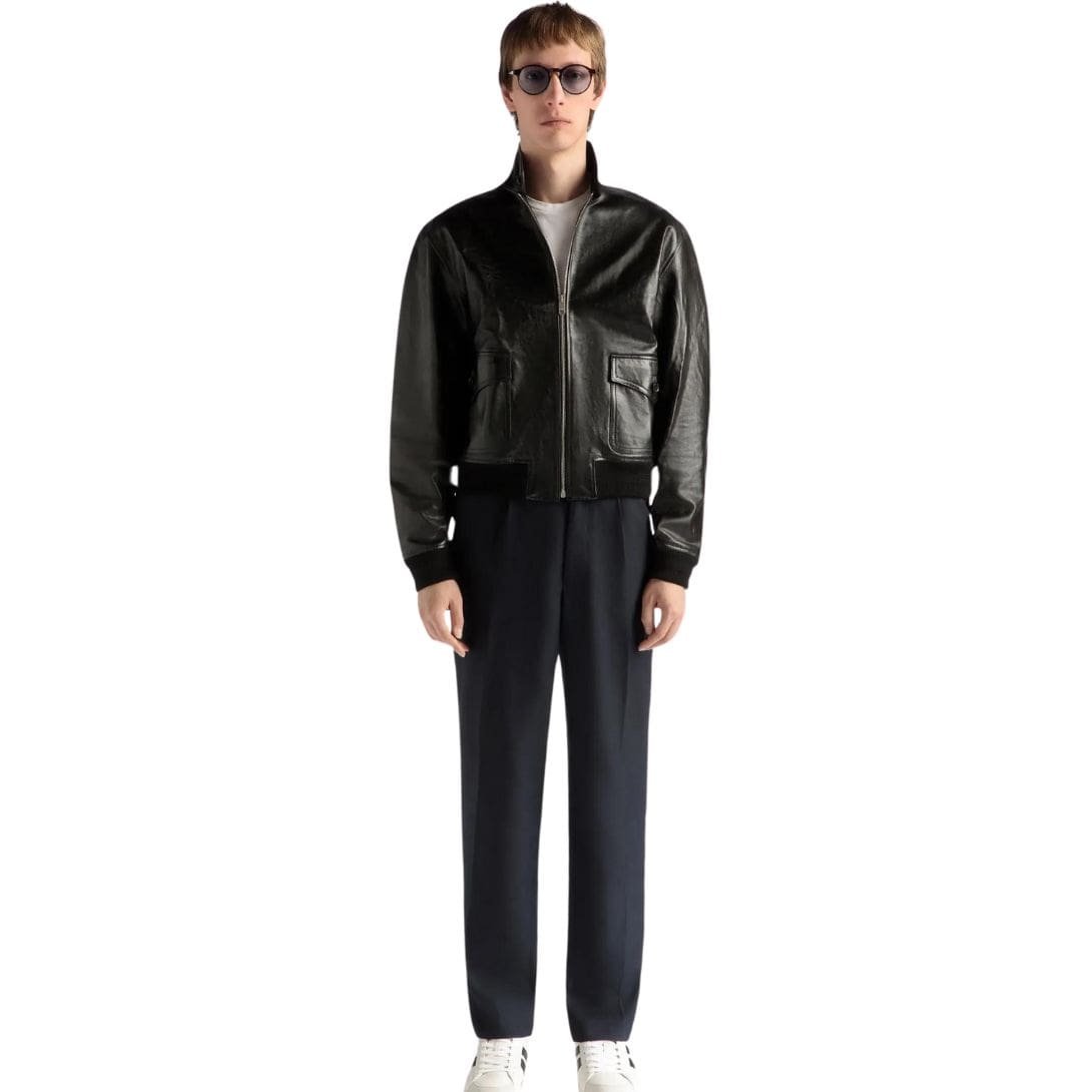 Constructed from supple black leather, the blouson exudes a sense of effortless cool, its sleek silhouette accentuated by the natural sheen of the high-quality material. The buttery texture of the leather lends a tactile richness to the garment, inviting touch and promising comfort from the moment it’s worn.