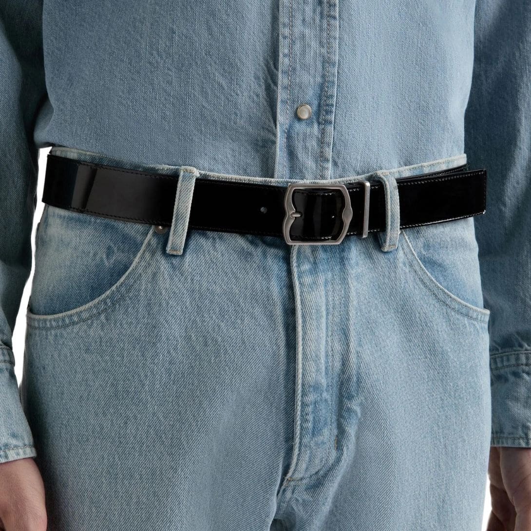 The Bally Emblem 35mm Belt in Black Patent Leather epitomizes sophistication and timeless elegance. Crafted with precision and meticulous attention to detail, this accessory seamlessly marries classic design with modern flair.
