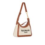 Presenting the Balmain B-Army canvas bag with leather inserts, a captivating blend of canvas and calfskin, embodying Balmain’s distinctive fusion of style and functionality.