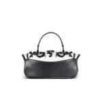 Its elongated shape adds a touch of refinement, while both a handle and detachable shoulder strap, equipped with snap hooks, offer versatility in carrying options. The flap features a magnetic monogram clasp, ensuring secure closure while exuding a sense of sophistication.