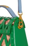 What truly sets this bag apart is its intricate openwork grid motif, meticulously crafted into the leather. The grid design adds a touch of architectural elegance, reminiscent of the geometric patterns often found in haute couture and contemporary art. This meticulous detailing elevates the bag from a mere accessory to a true work of art, making it a coveted piece for fashion connoisseurs and trendsetters alike.