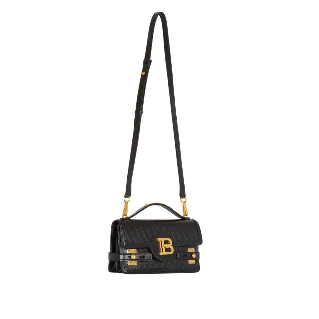 BALMAIN B-BUZZ 23 BAG IN GRID-EMBOSSED CALFSKIN