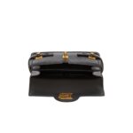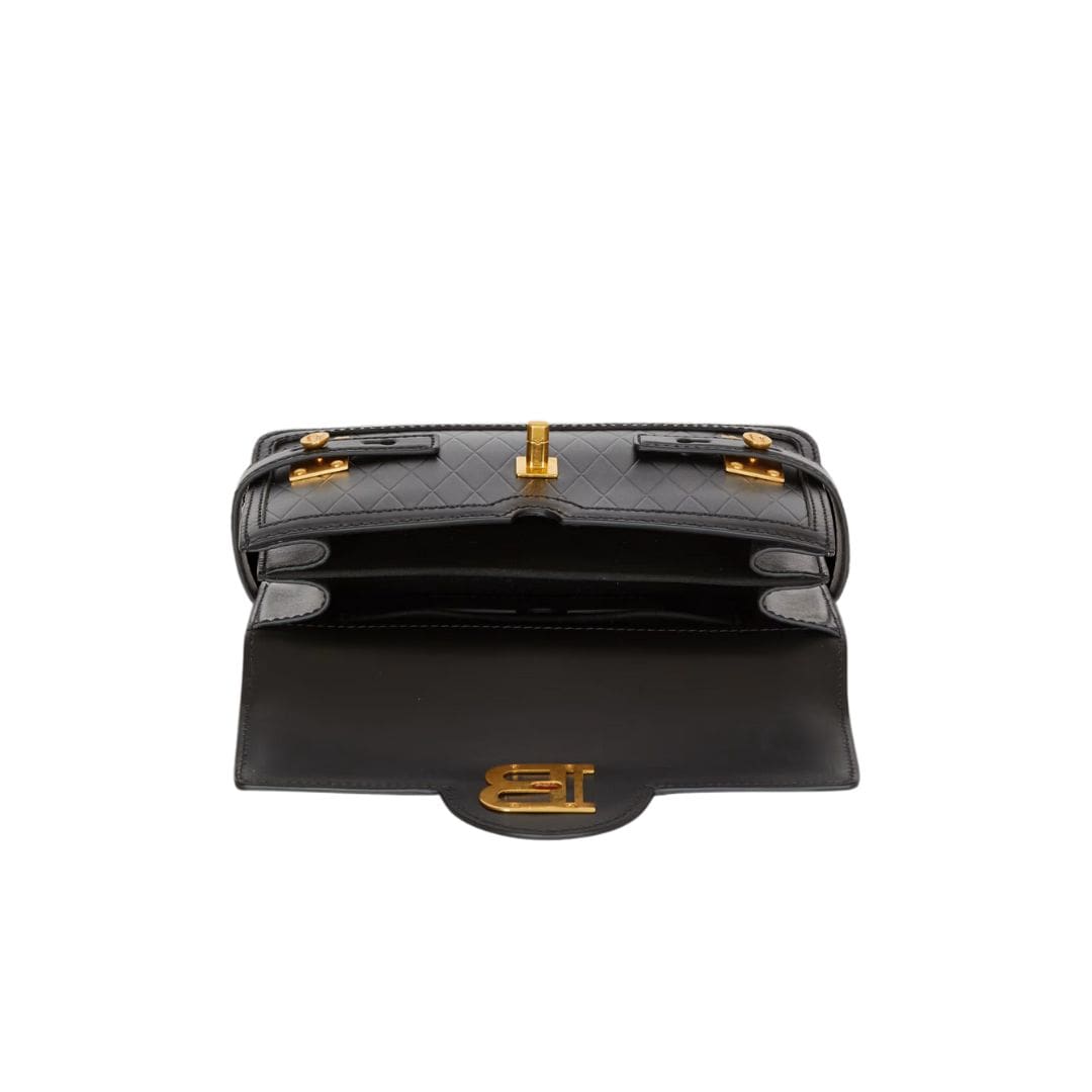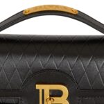 The bag features Balmain’s iconic golden bee emblem embellished on the front flap, serving as a symbol of the brand’s illustrious heritage and unwavering commitment to luxury craftsmanship. The signature gold-tone hardware further accentuates the bag’s opulent allure, adding a touch of glamour to any ensemble.