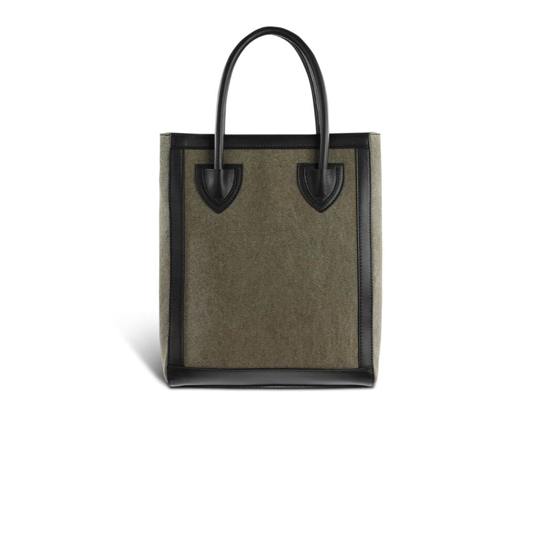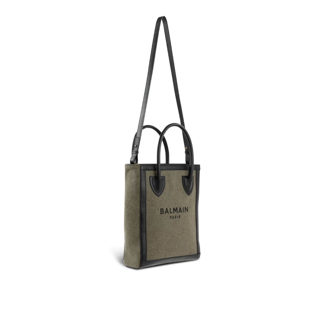 BALMAIN CANVAS B-ARMY 26 BAG WITH LEATHER PANELS