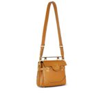 The flap, secured with a quarter-turn B-Twist clasp, adds a touch of elegance while ensuring the safety of your belongings. A practical patch pocket at the back enhances the bag’s functionality.