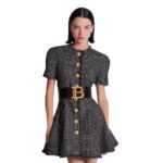 The focal point of this iconic accessory is undoubtedly the gleaming gold-tone “B” buckle, which serves as a striking emblem of the Balmain brand. Meticulously designed with intricate detailing, the emblematic letter pays homage to the label’s rich heritage while exuding a contemporary allure. The juxtaposition of the polished hardware against the rich leather creates a visually arresting contrast, adding a touch of glamour to any ensemble.