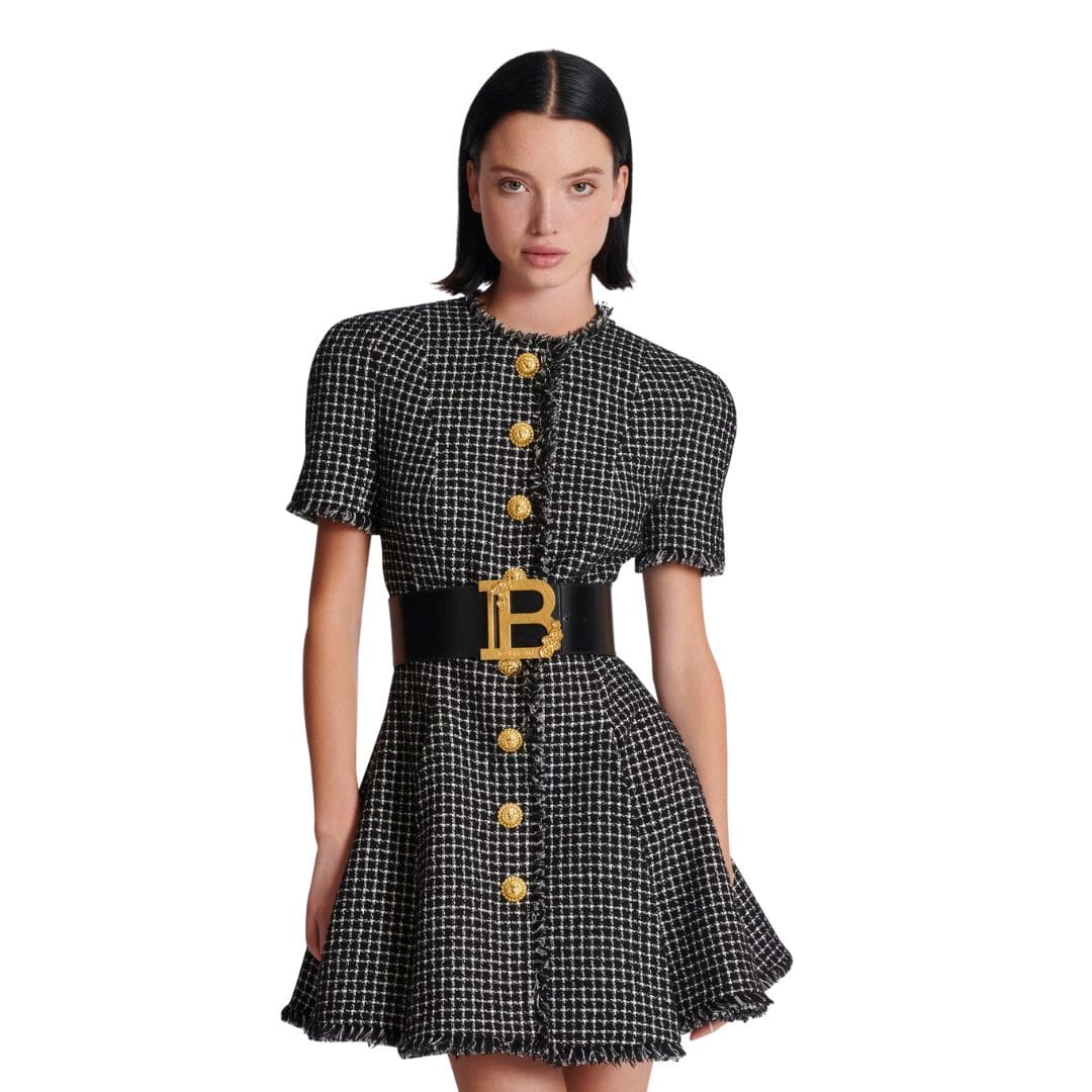 Versatility is another hallmark of the Balmain Wide Calfskin B Belt. Whether cinching the waist of a tailored blazer or accentuating the waistline of a flowing dress, this accessory effortlessly elevates any look with its innate sense of refinement. Its adjustable design ensures a customized fit, while the enduring quality ensures that it remains a staple in your accessory collection for years to come.