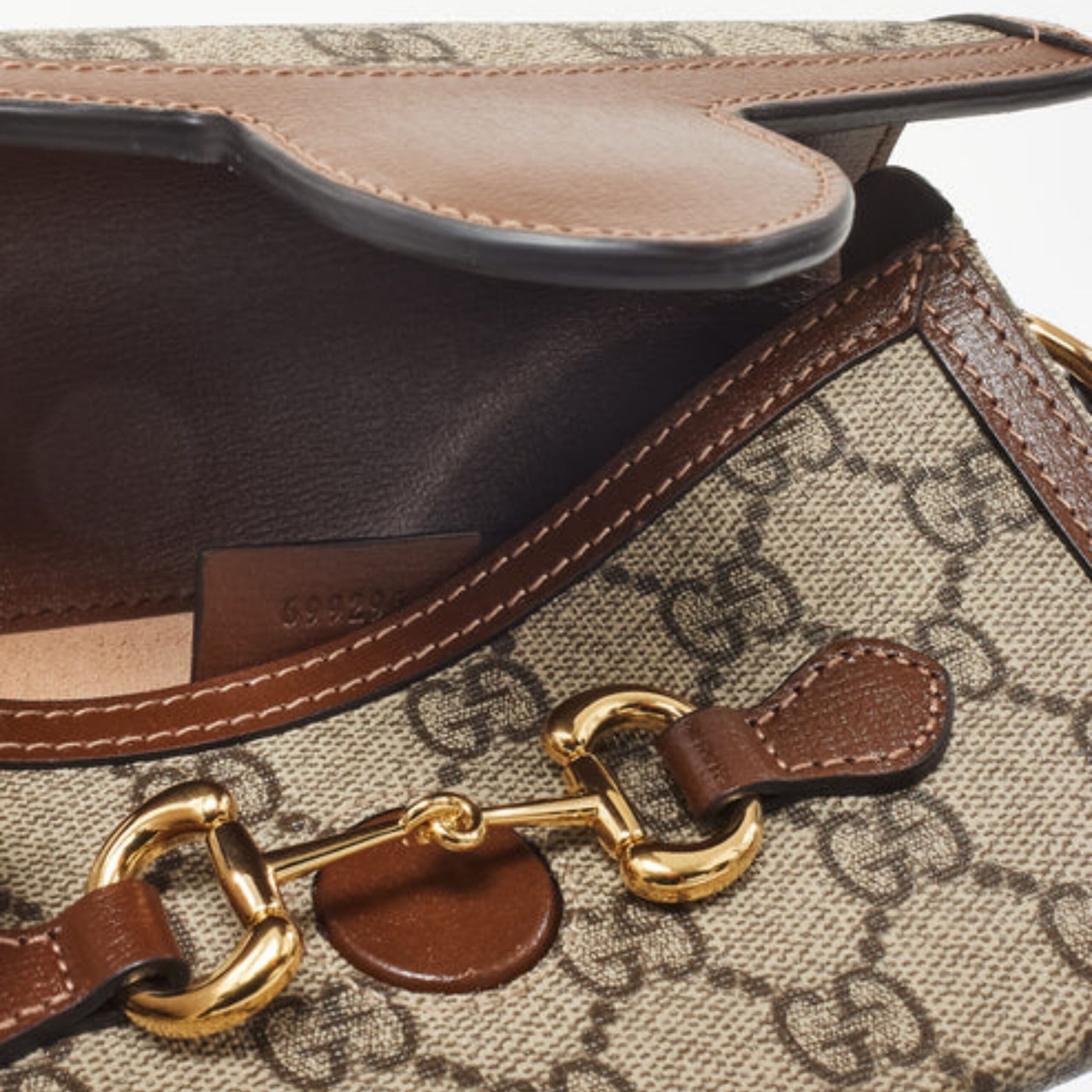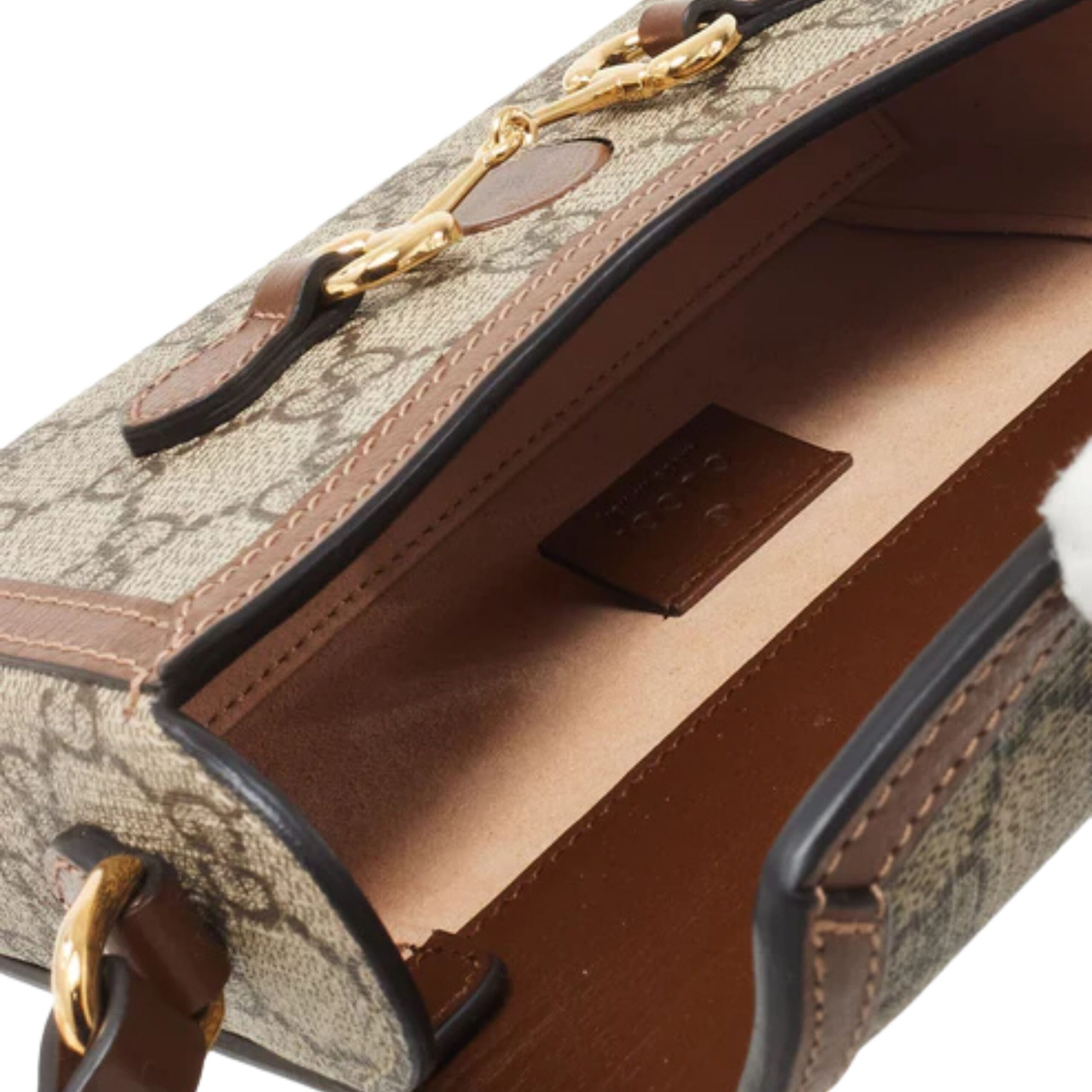 Perfect for women who appreciate luxury fashion with practical design, the Beige and Dark Brown GG Supreme Canvas Horsebit 1955 Mini Crossbody Bag is more than just an accessory—it’s a symbol of timeless style and impeccable craftsmanship. Pair it effortlessly with casual ensembles or elevate evening looks with this iconic Gucci piece.