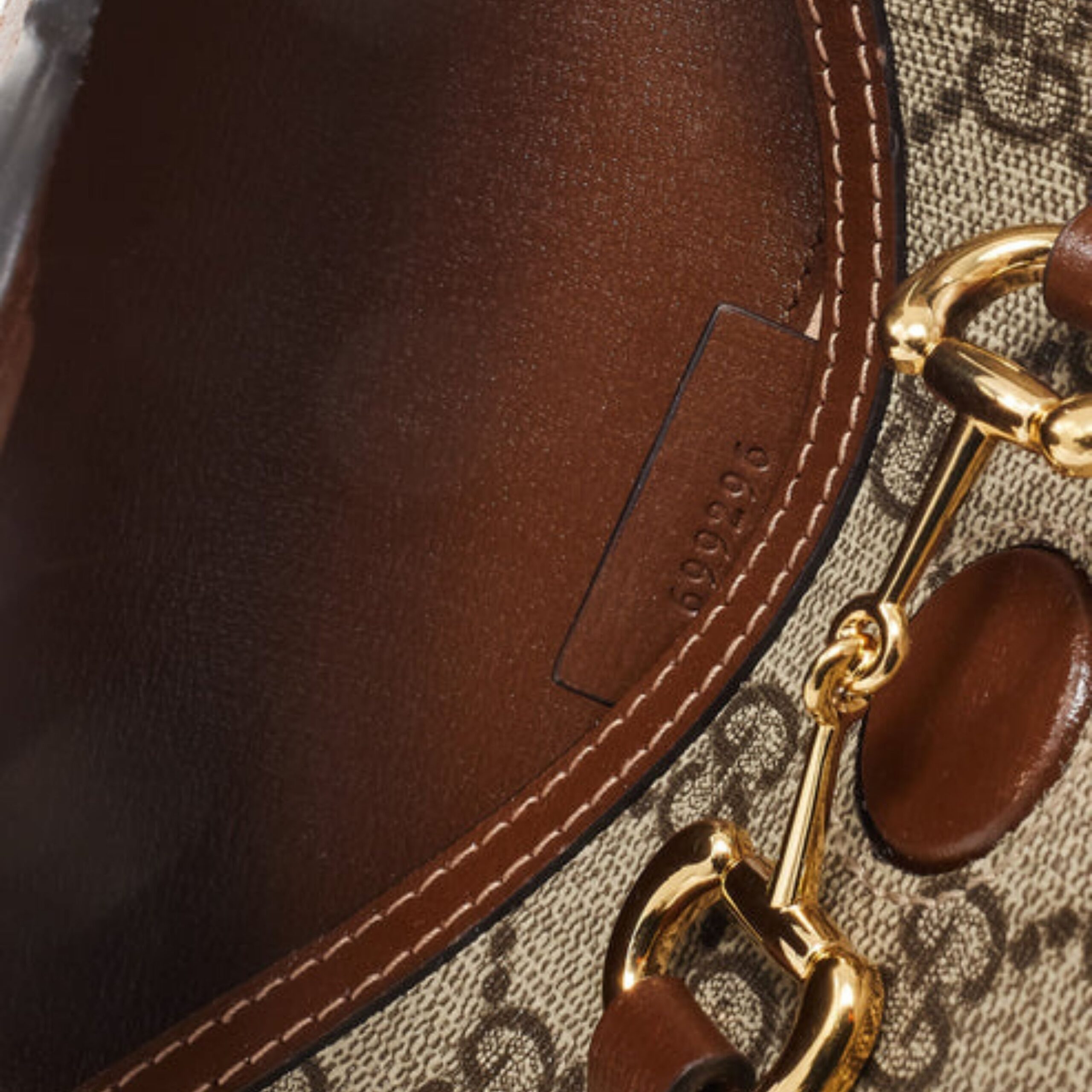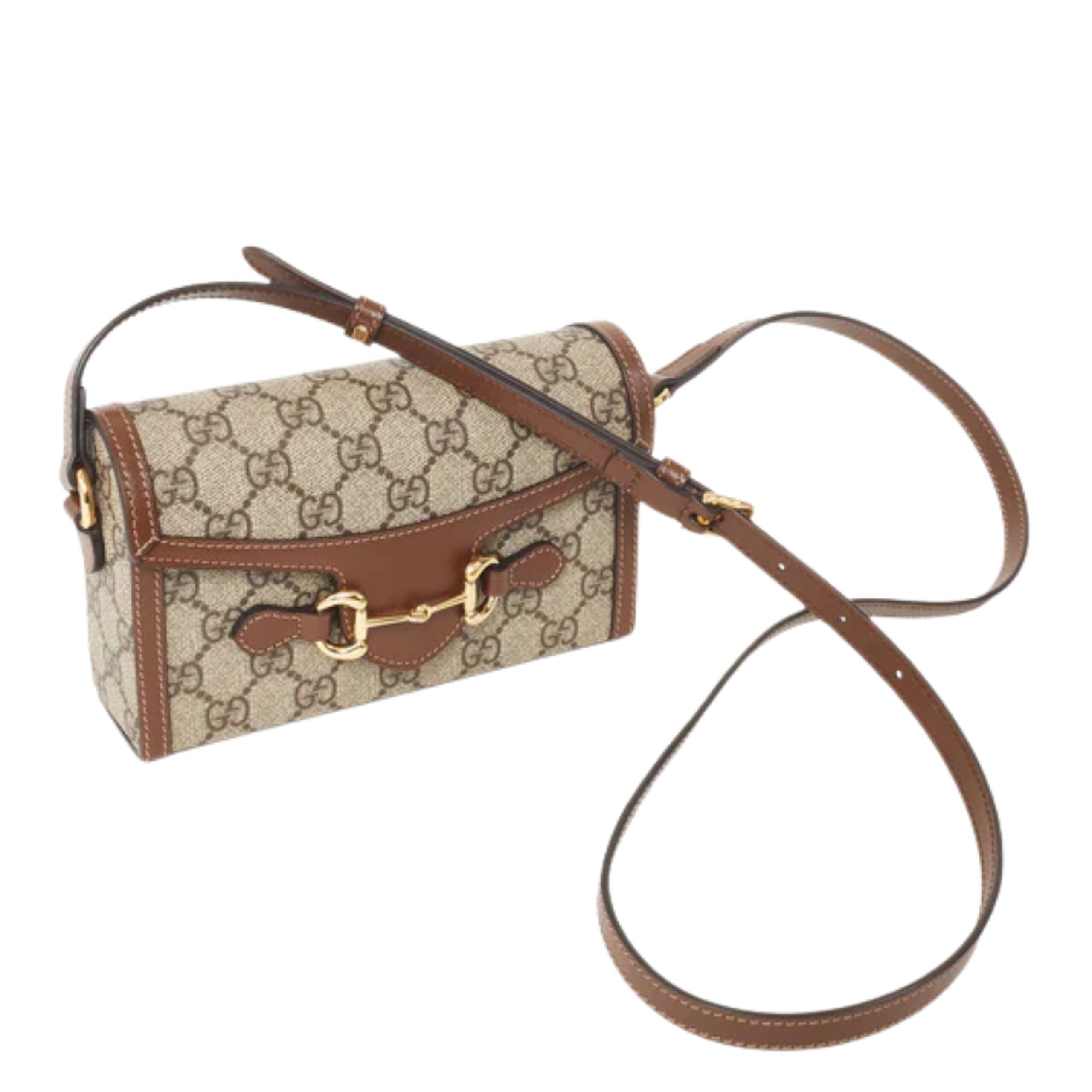 Beige and Dark Brown GG Supreme Canvas Horsebit 1955 Mini Crossbody Bag is a timeless statement piece that blends iconic design with everyday functionality. Crafted from Gucci’s signature GG Supreme canvas in beige and dark brown, this bag showcases the brand’s heritage craftsmanship and instantly recognizable pattern. The structured silhouette, combined with the classic Horsebit detail—a symbol deeply rooted in Gucci’s equestrian tradition—gives this crossbody an elegant yet modern appeal, perfect for any occasion.