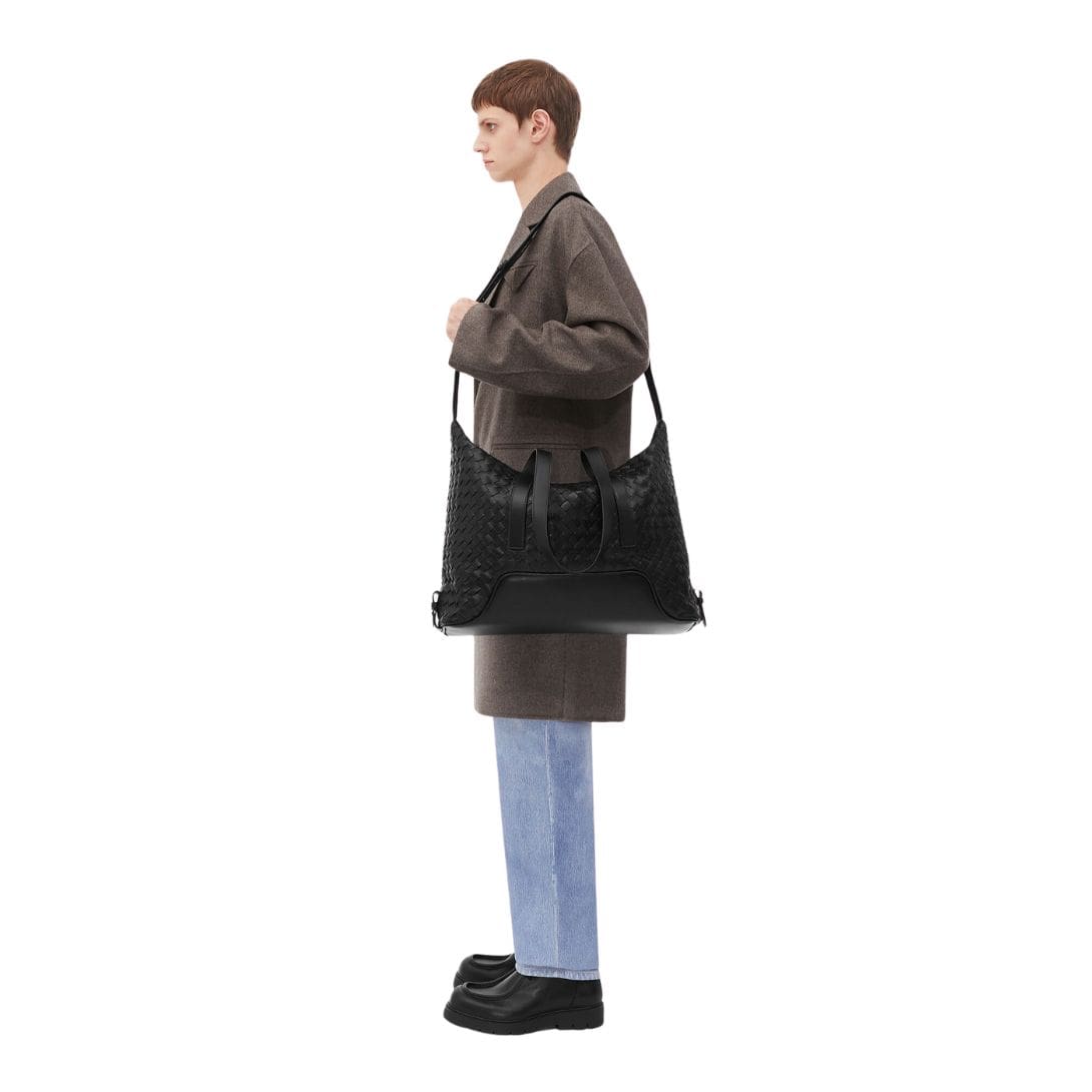 Crafted from the finest materials, the Helix Weekender showcases Bottega Veneta’s signature intrecciato weave, a meticulous technique that creates a distinctive pattern renowned in the world of high fashion. The interwoven leather panels not only add visual interest but also enhance the bag’s durability, ensuring it withstands the rigors of travel with grace.