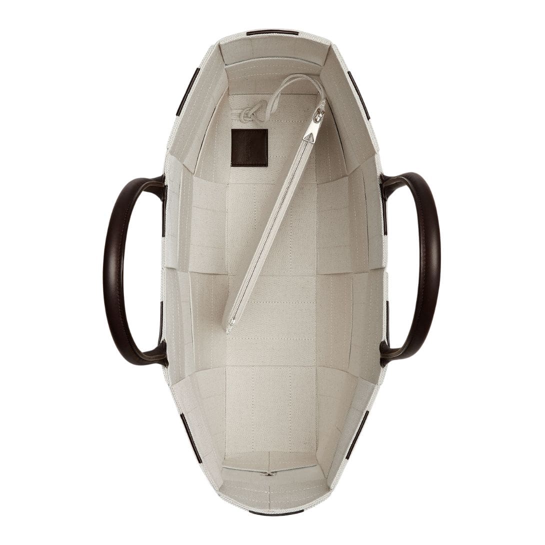 The interior of the Large Arco Tote is as thoughtfully designed as its exterior. It boasts a suede lining that adds a luxurious touch while providing durability. Multiple compartments, including a zipped pocket, offer practical storage solutions, ensuring that belongings are organized and easily accessible. The open-top design, secured with a discreet magnetic closure, allows for quick access while maintaining security.