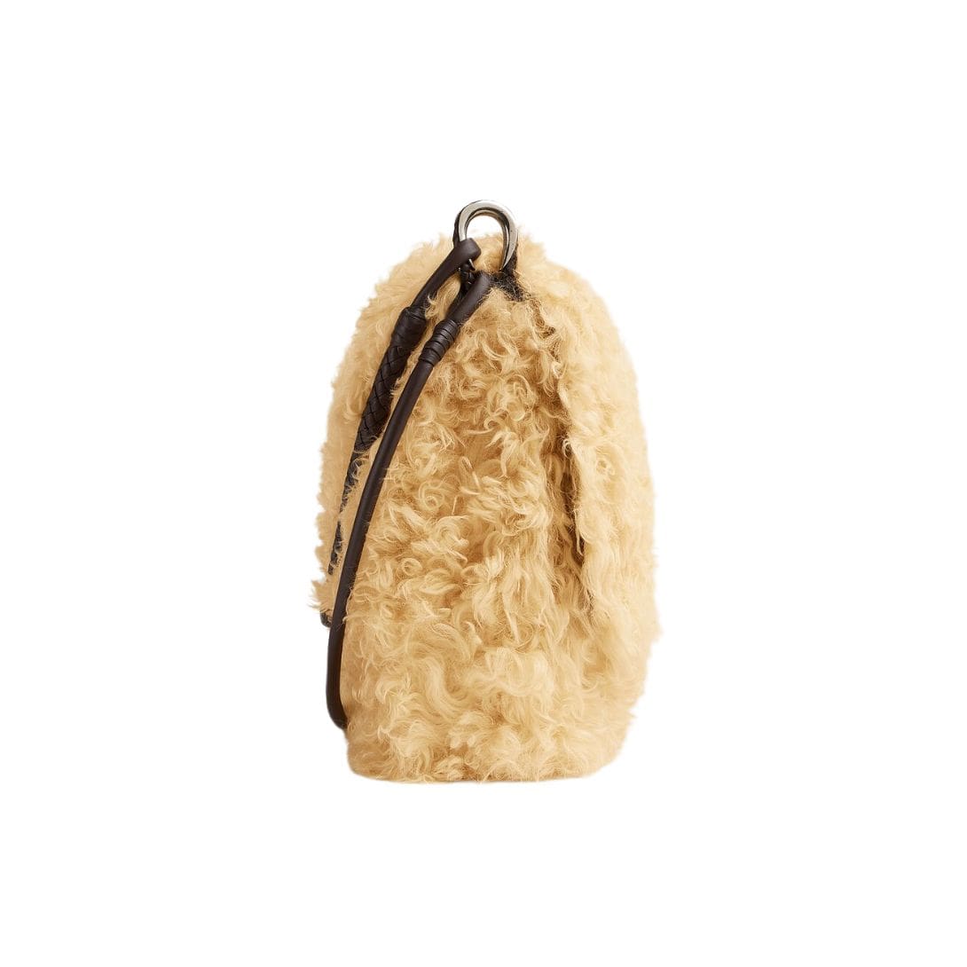 At first glance, the bag captivates with its clean lines and minimalist aesthetic, characteristic of Bottega Veneta’s design philosophy. The smooth, supple leather exterior exudes sophistication and durability, ensuring that it not only looks refined but also stands the test of time. The silhouette is sleek yet practical, featuring a flap closure adorned with Bottega Veneta’s iconic intrecciato weave pattern, a hallmark of the brand’s artisanal heritage.