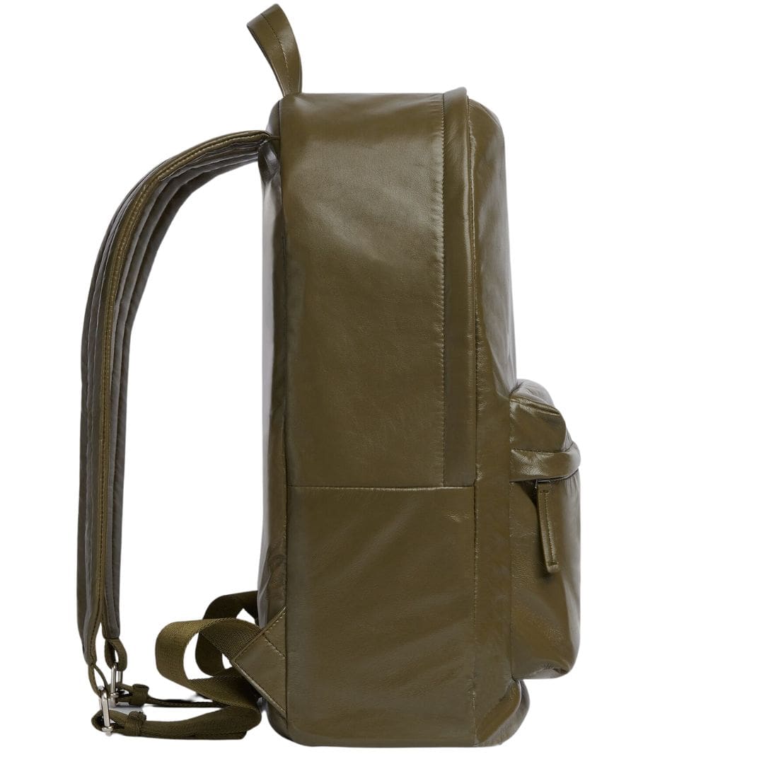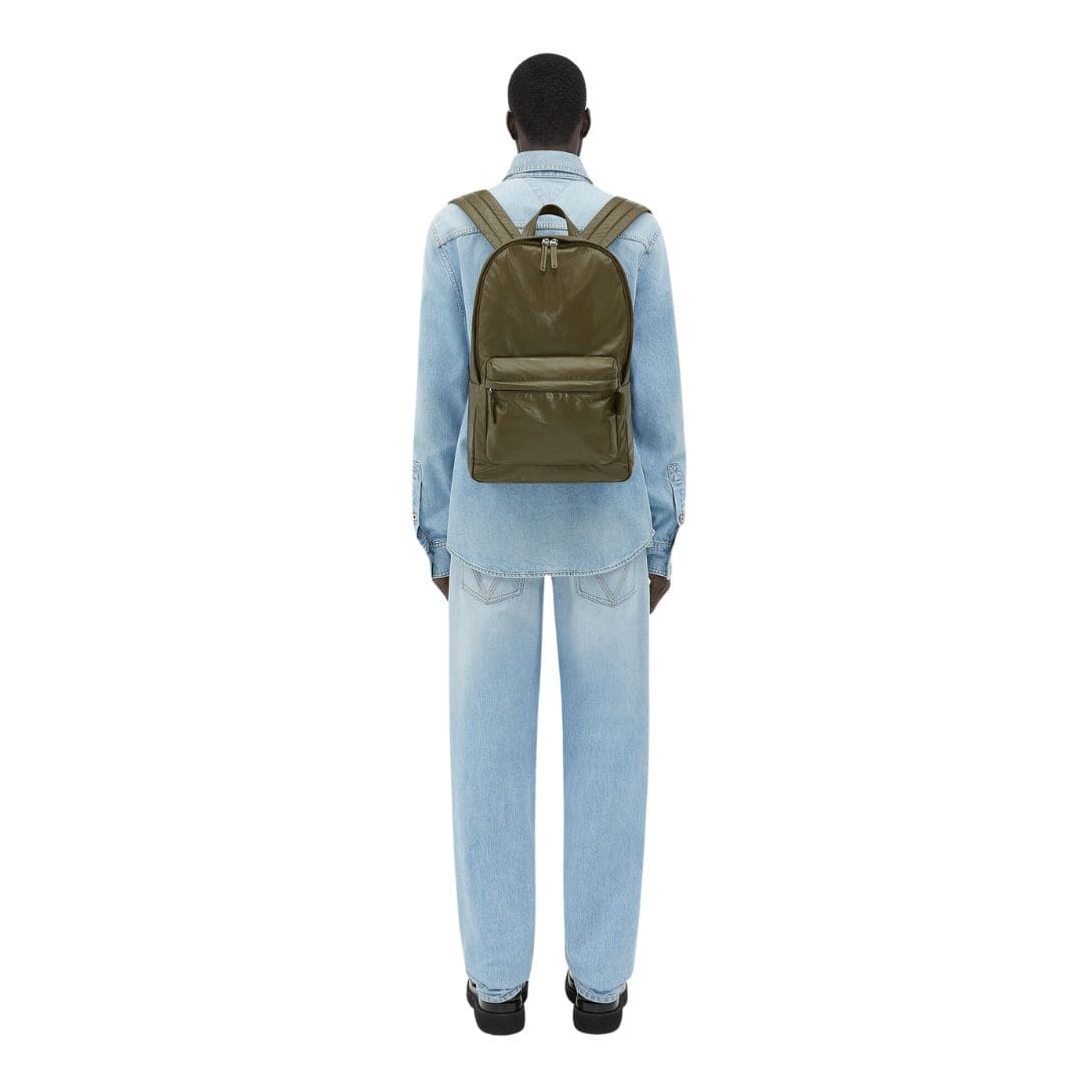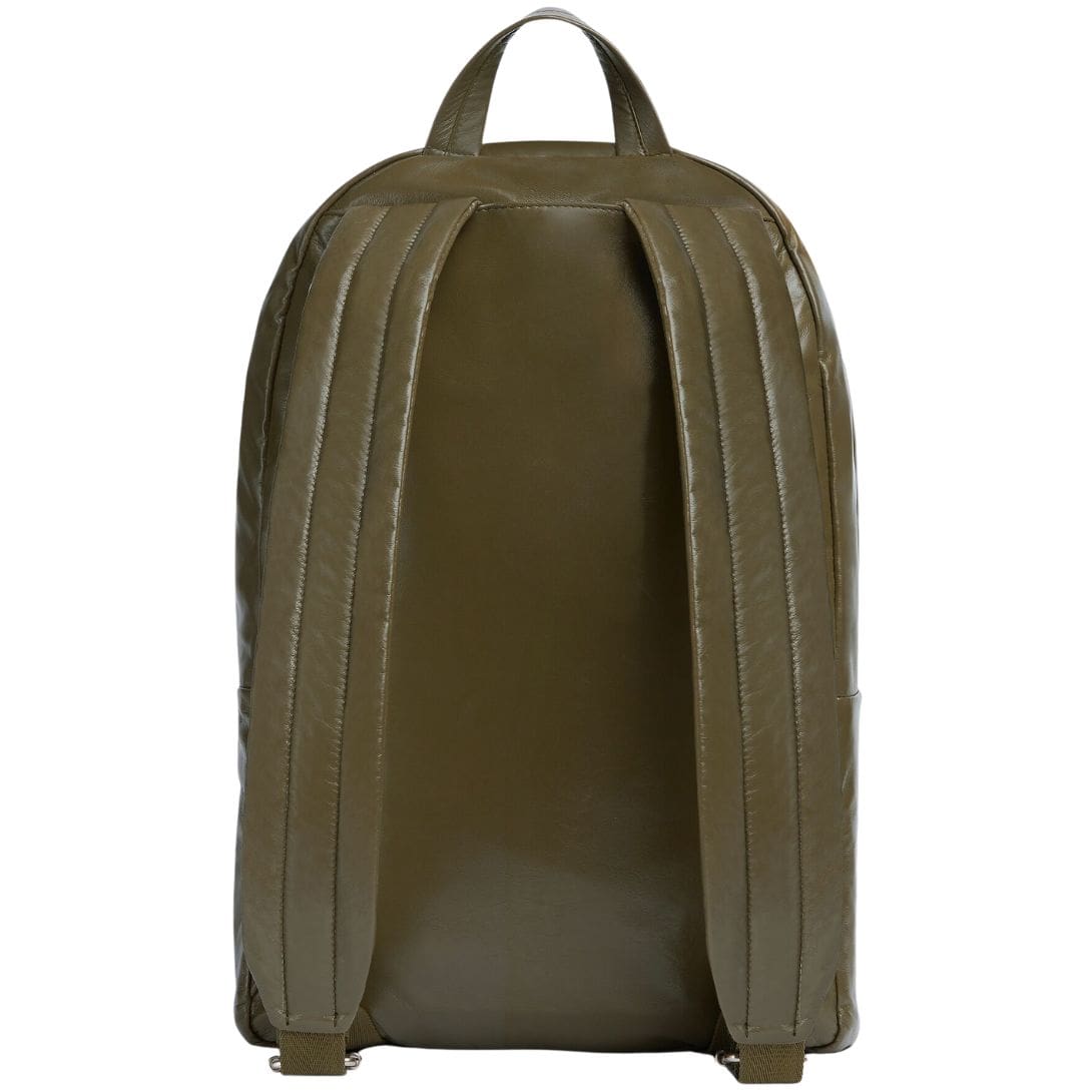 The backpack boasts a sleek and minimalist silhouette, characterized by clean lines and a streamlined shape. Its medium size offers ample space for essentials without appearing bulky, making it a versatile choice for various occasions. The main compartment is spacious enough to accommodate a laptop, documents, and other personal items, while additional internal pockets help keep belongings organized. A front zip pocket provides easy access to smaller items, such as a phone or keys, ensuring they are always within reach.