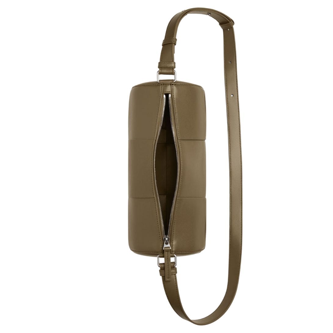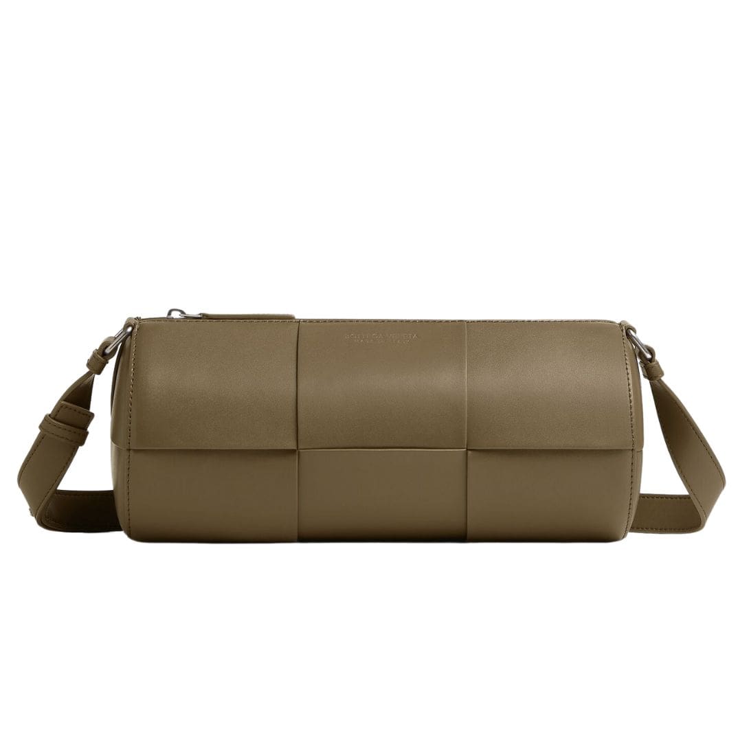 The defining feature of the Medium Canette is its distinctive cylindrical shape, inspired by vintage perfume bottles. This unique design element sets it apart from traditional handbags, adding a touch of avant-garde flair to its classic aesthetic. The bag is adorned with Bottega Veneta’s signature Intrecciato weave, a meticulous handwoven pattern that showcases the brand’s artisanal expertise.