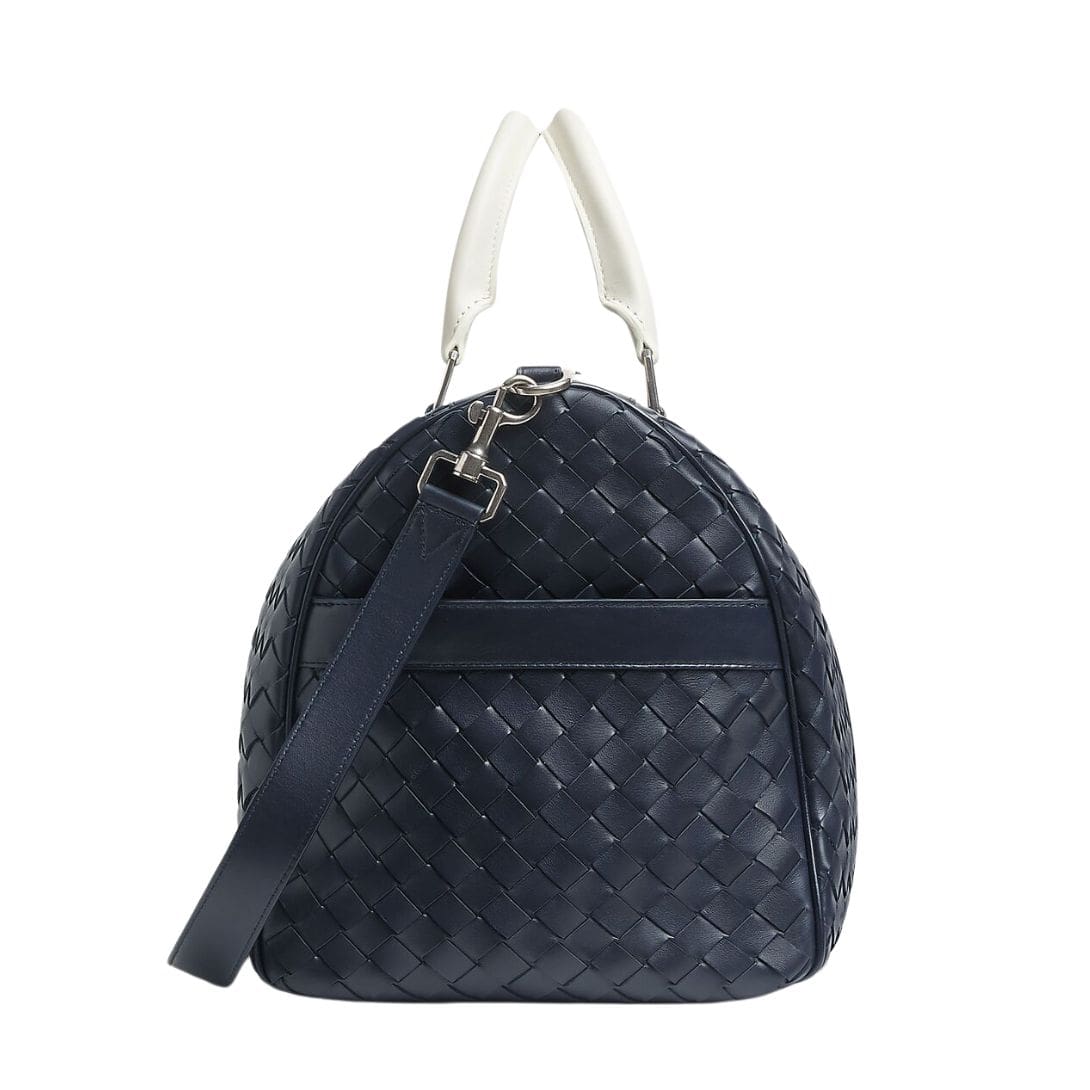 At first glance, the duffle’s exterior showcases Bottega Veneta’s iconic Intrecciato weave, a hallmark technique that involves meticulously braiding strips of supple leather to create a distinctive pattern. The result is a mesmerizing interplay of texture and pattern, elevating the bag’s aesthetic appeal to unparalleled heights. This intricate weaving technique not only enhances the bag’s visual allure but also reinforces its durability, ensuring that it withstands the test of time with grace and sophistication.