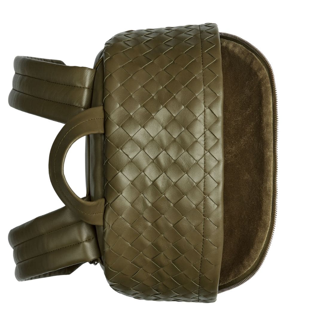 Constructed from supple leather, the backpack boasts a medium size that strikes the perfect balance between functionality and sophistication. Its streamlined silhouette exudes a timeless appeal, making it a versatile accessory for both casual outings and more formal occasions. The rich texture of the intrecciato weave adds depth and dimension to the design, creating a tactile experience that is both luxurious and refined.