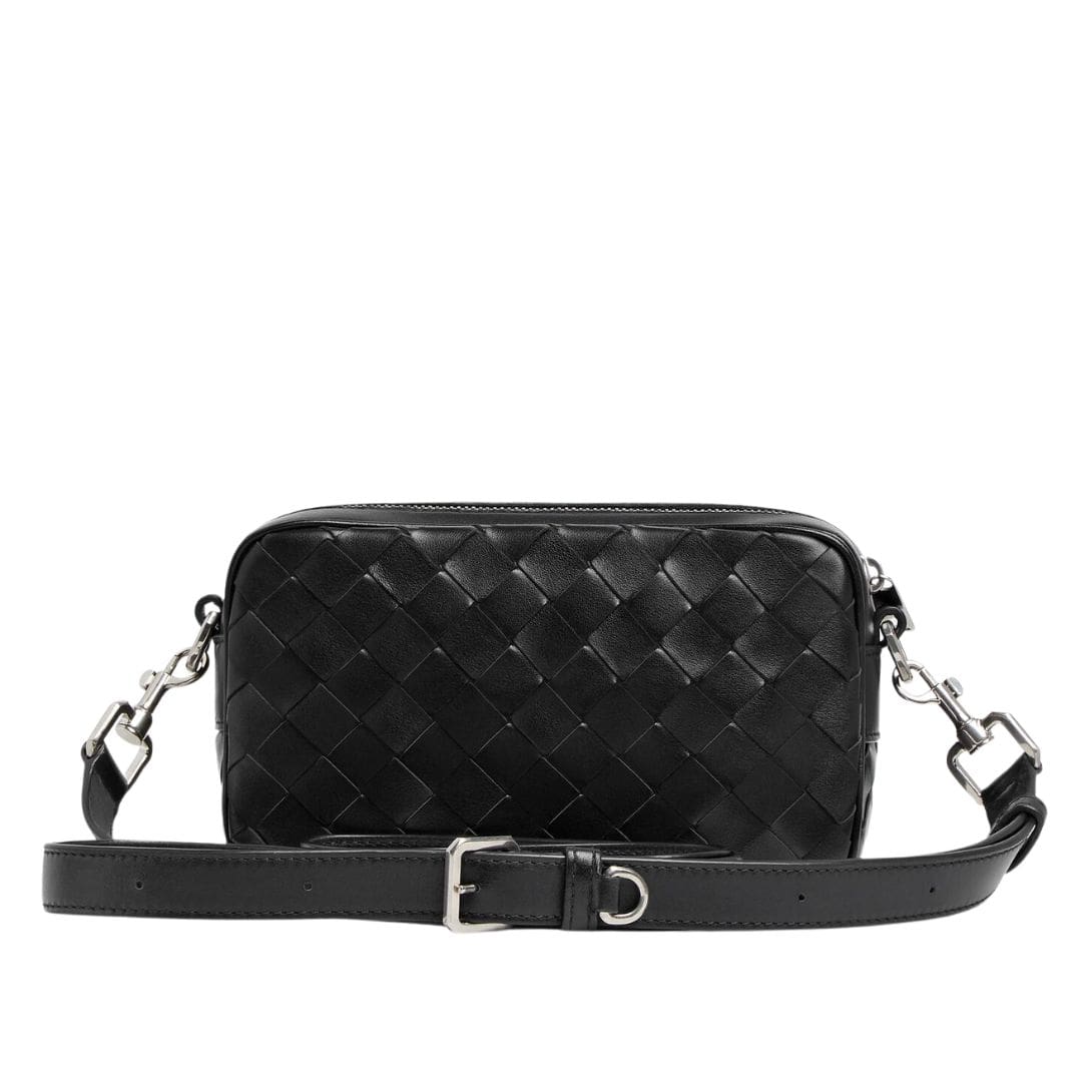 Designed with versatility in mind, the Mini Intrecciato Camera Bag features a sleek, rectangular silhouette adorned with minimalistic hardware, exuding timeless sophistication. Its compact size belies its practicality, offering enough space to carry essentials without compromising on style. The adjustable leather strap allows for effortless crossbody or shoulder wear, ensuring comfort and convenience on the go.