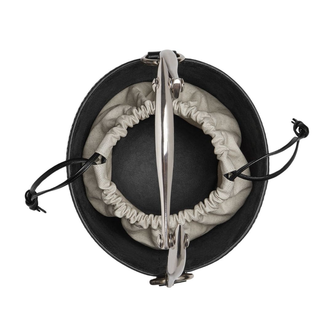 The interior of the Sardine Bucket is spacious and well-organized, featuring a lined compartment that can accommodate daily essentials such as a phone, wallet, and cosmetics. The bag closes with a magnetic snap, ensuring that your belongings are securely stored while still easily accessible.