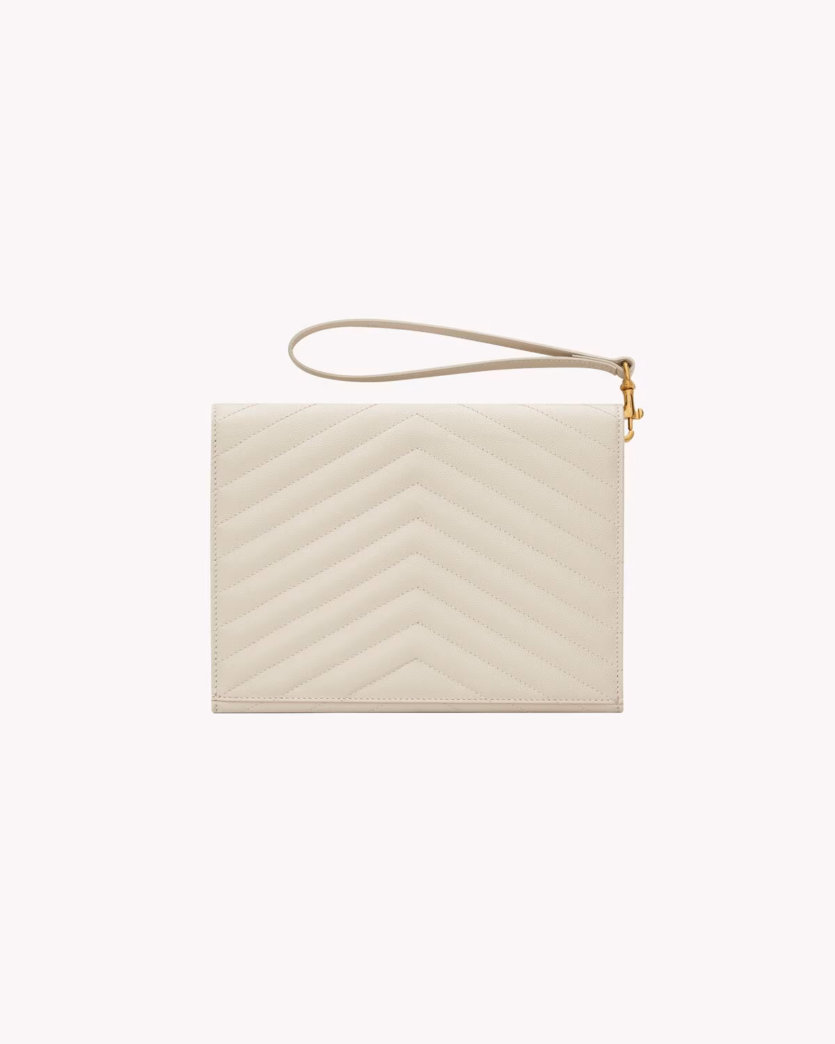 The Cassandre Matelasse Flap Pouch in Grain de Poudre Leather by Saint Laurent is a timeless statement of elegance and functionality. Crafted from luxurious grain de poudre leather, known for its finely textured and resilient surface, this pouch offers a refined yet durable accessory for both day and evening wear.