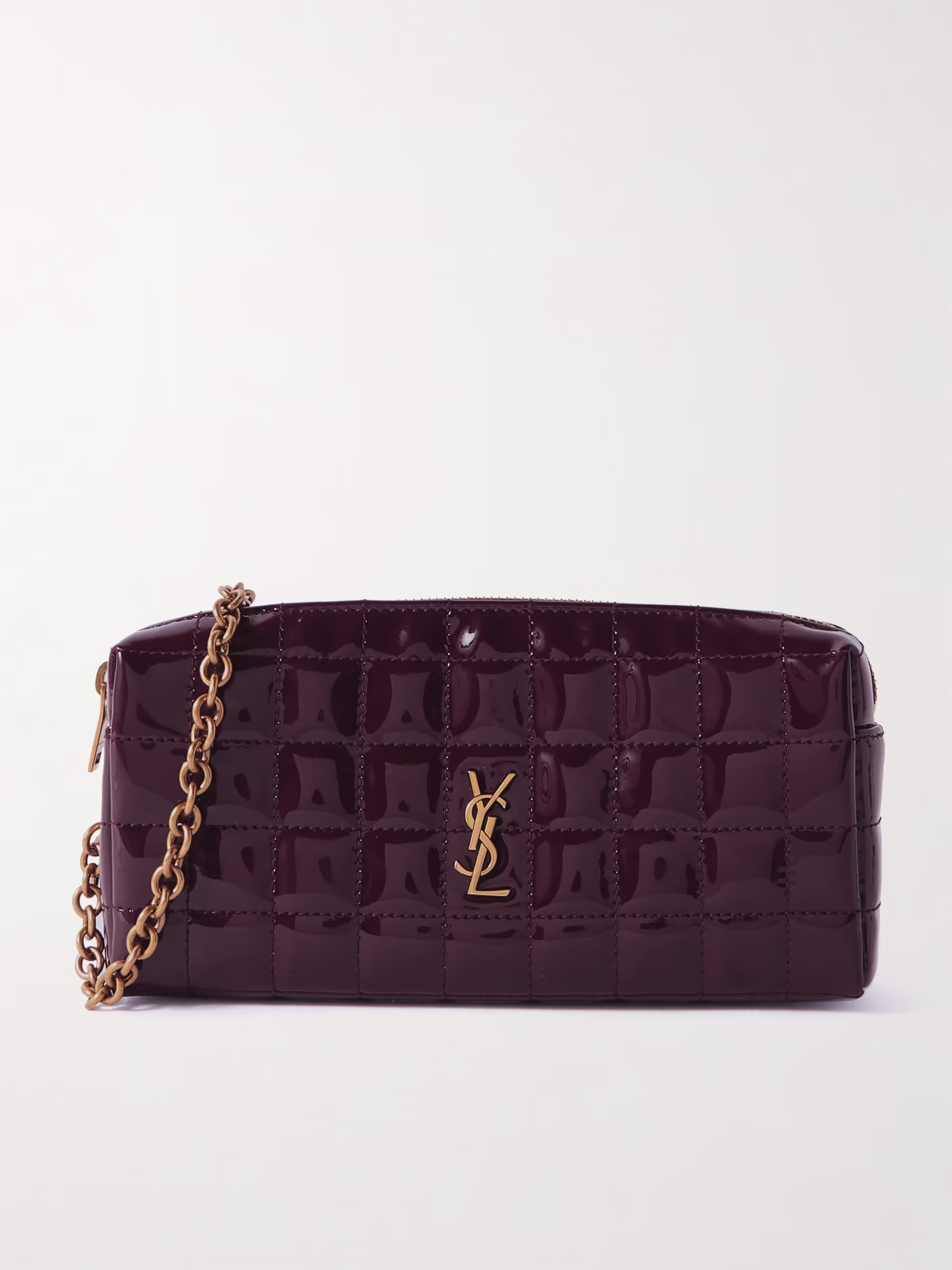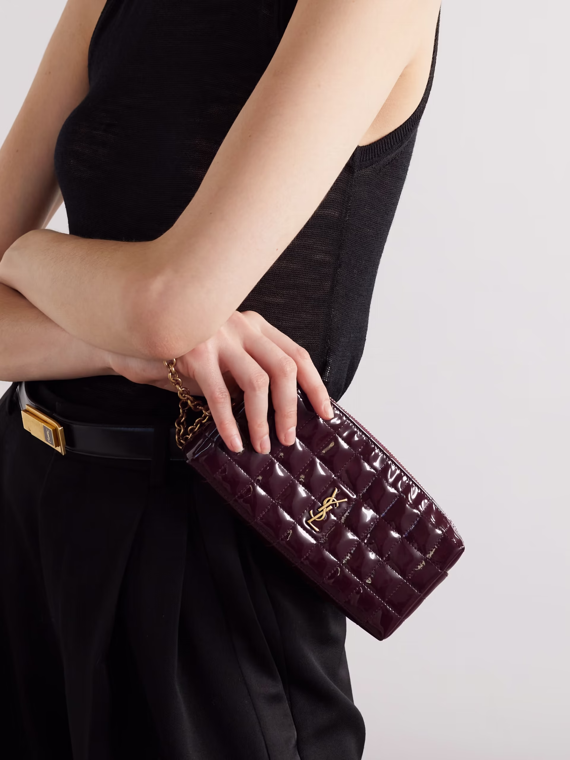 The Cassandre Mini Matelasse Vinyl Clutch by Saint Laurent is a statement of timeless elegance and modern glamour. Crafted from high-shine vinyl with a distinctive chevron-quilted texture, this clutch effortlessly combines edgy sophistication with classic design elements. The glossy finish amplifies the bag’s luxurious appeal, while the structured silhouette lends it a polished, refined presence suitable for both day and evening looks.