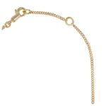 This delicate brass necklace features a thin chain with a refined pendant, offering a sophisticated and minimalist touch to any outfit. The total length of 16 inches (41 cm) can be adjusted to 15.4 inches (39 cm) for a customizable fit. The 0.6-inch (1.4 cm) pendant adds a subtle yet distinguished accent.