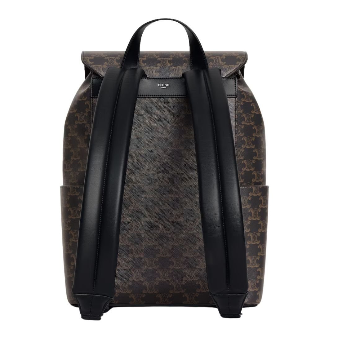 Crafted from signature Triomphe Canvas with refined calfskin trimmings, this backpack blends elegance with durability. The sophisticated silver finishing adds a modern touch to its classic silhouette.