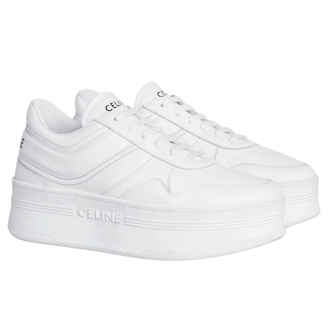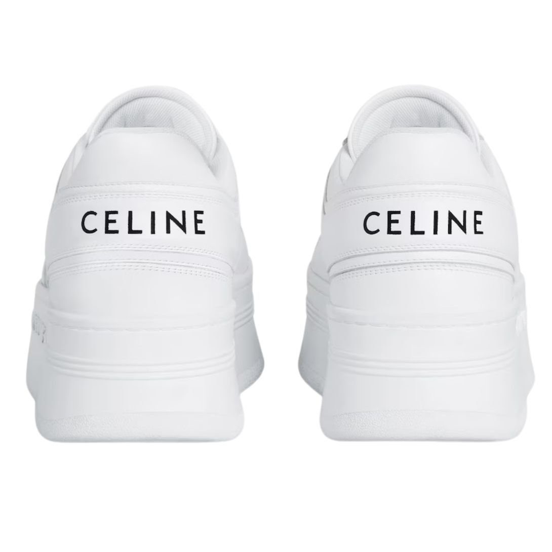 CELINE BLOCK SNEAKERS WITH WEDGE OUTSOLE IN CALFSKIN OPTIC WHITE
