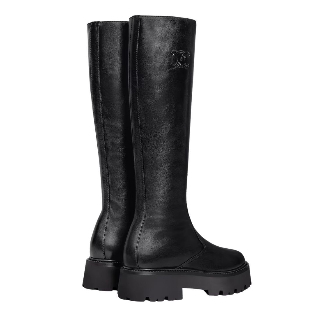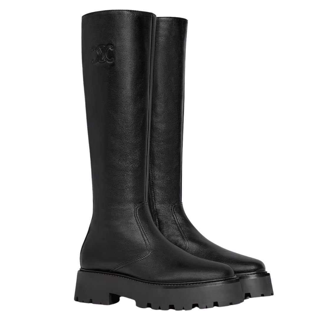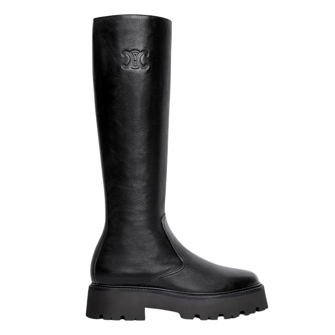 Featuring a round toe shape, these boots are designed for a sleek yet timeless silhouette. The Triomphe signature debossed on the top of the shaft adds a refined touch, while the CELINE signature debossed under the outsole reinforces the brand’s signature aesthetic.