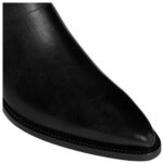 The pointed toe shape and 2-inch (50mm) inclined stacked leather heel create a sophisticated and modern silhouette. A removable leather harness with a nickel-finish chain adds a bold, statement-making touch while allowing for versatile styling options.