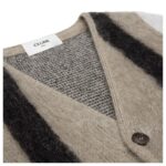 The cardigan is adorned with five Celine-engraved horn buttons, a subtle yet distinguished detail that reflects the brand’s craftsmanship and heritage.