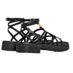 Made from 100% calfskin, these Celine Clea Triomphe Strappy Sandal in Calfskin Vegetal Tanning Black offer a refined, smooth finish with excellent durability. The 100% calfskin lining ensures a soft and comfortable feel, enhancing the overall wearability.