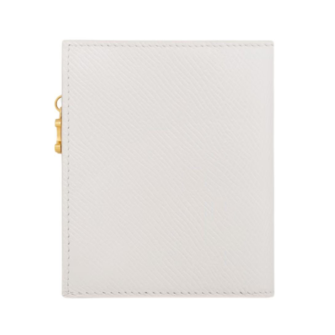 Expertly crafted from high-quality calfskin, this Celine Compact Wallet Triomphe Charms in Grained Calfskin Rice offers a smooth, supple texture that exudes sophistication. The matching calfskin lining ensures durability while maintaining a luxurious feel.