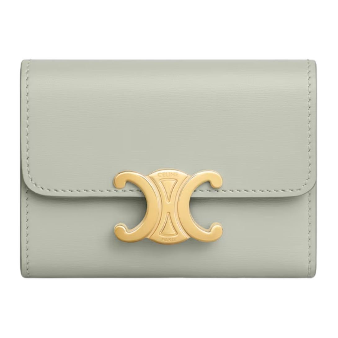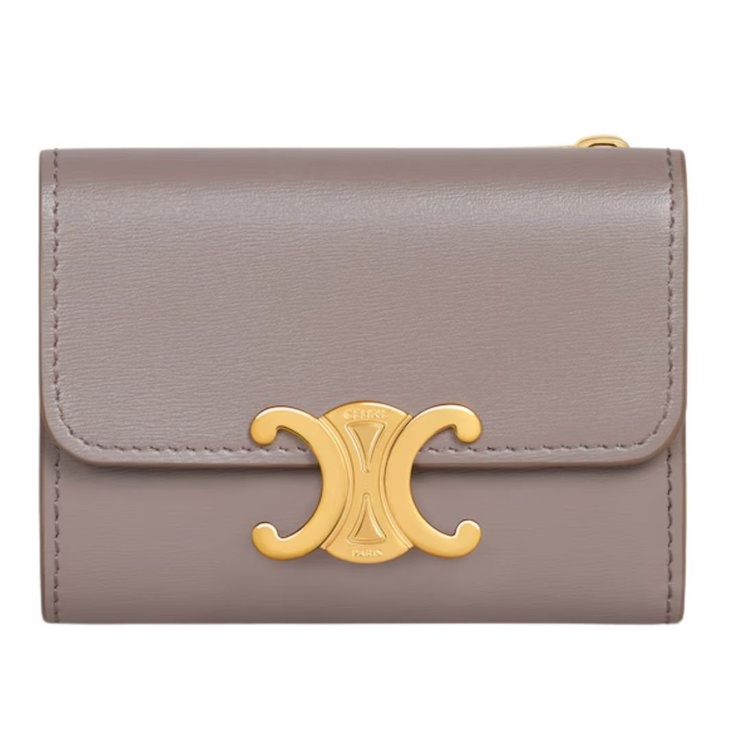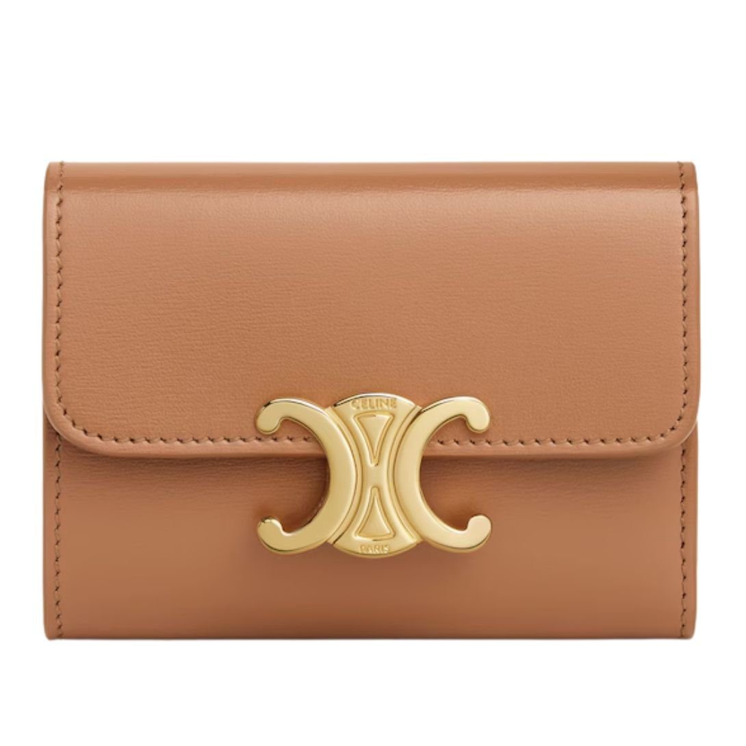 CELINE COMPACT WALLET WITH COIN TRIOMPHE IN SHINY CALFSKIN LIGHT CLAY