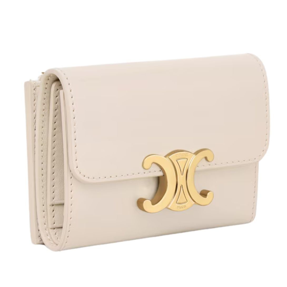 CELINE COMPACT WALLET WITH COIN TRIOMPHE IN SHINY CALFSKIN PALE BEIGE