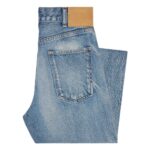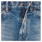 Featuring a union wash, these jeans offer a stylishly worn-in aesthetic. The five-pocket design enhances practicality, while rivets on the front pockets provide durability and a touch of rugged charm. A patch at the back on the waistband showcases Celine’s branding, and the Celine jeans-engraved zip and buttons add an exclusive, luxurious finish.