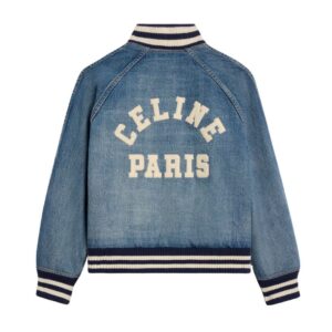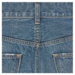 These jeans are embellished with “Triomphe” signature chains, adding a luxurious and distinctive touch. The five-pocket design offers practicality, while riveted front pockets enhance durability. A Celine-engraved button and zipper complete the look, showcasing the brand’s attention to detail and refined craftsmanship.