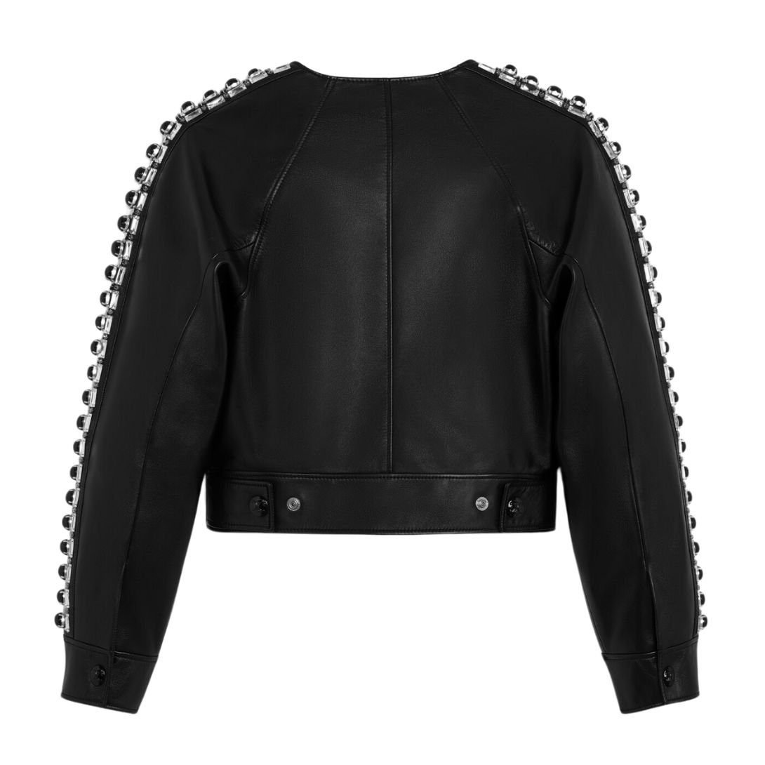 This luxurious Celine Embroidered Blouson Jacket in Soft Lambskin is crafted from 100% lambskin, offering a soft, supple texture with a sleek finish. The 51% modal and 49% viscose lining ensures a smooth and breathable feel, providing both comfort and elegance.