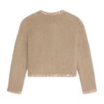 This Celine Embroidered Cardigan Jacket in Brushed Mohair is adorned with intricate braided piping, delicately embellished with sequin embroidery. The shimmering details add a touch of sophistication and refinement, elevating the design with subtle brilliance.