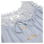The neckline is adorned with Triomphe broderie anglaise, adding a delicate and intricate detail that enhances the garment’s feminine and refined aesthetic.