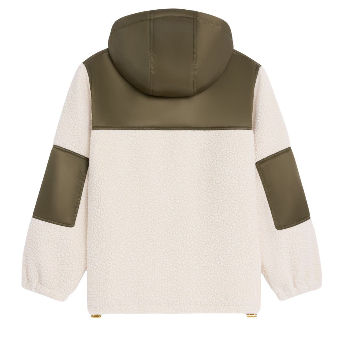 Crafted from a luxurious blend of cashmere, polyester, and wool, this loose-fit Celine Fleece Jacket in Fur Effect Cashmere combines comfort with effortless sophistication. The Triomphe patch adds a signature touch, while the adjustable drawstring hood with Celine Paris-engraved metal aglets enhances functionality.