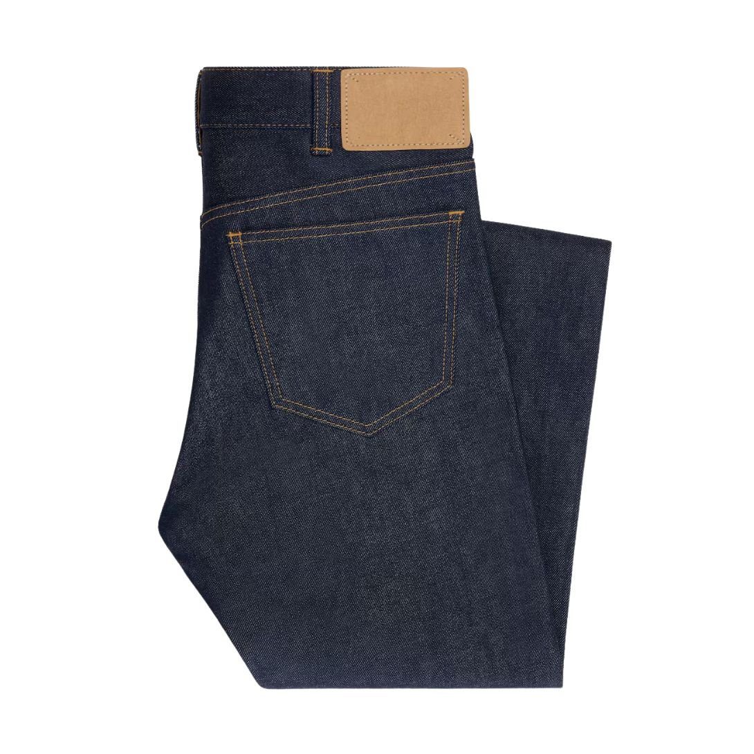 A five-pocket design provides practicality, while rivets on the front pockets enhance durability and add a refined touch. The patch at the back of the waistband reinforces the premium craftsmanship, completing the design with a signature detail.